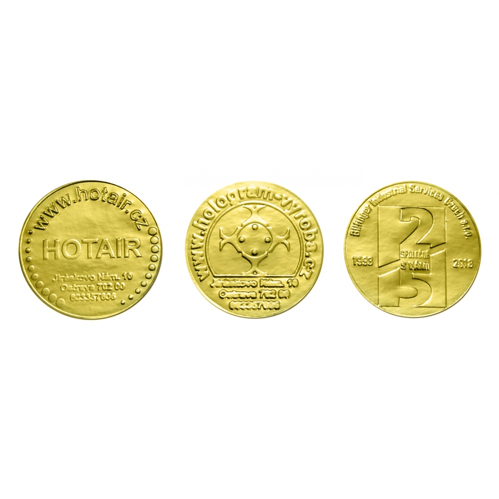 Round Sticker primarily designed for use with a punch to the dry stamping. The label is therefore adapted plan dies. It is an alternative to the above offered knurled sticker for dry stamping with the difference that this sticker lacks serrations. Sticker is circular with a diameter of 45mm and offer it in two colors - silver and gold. The surface of these stickers do not create a rainbow holographic effects; It is only composed of a monolithic silver or golden foil. Yet it is included in this section because it is the second choice for the product "Circular hologram for dry impression," and because of fewer color rendering provides subtle color eventual possibility of publishing a dry seal.