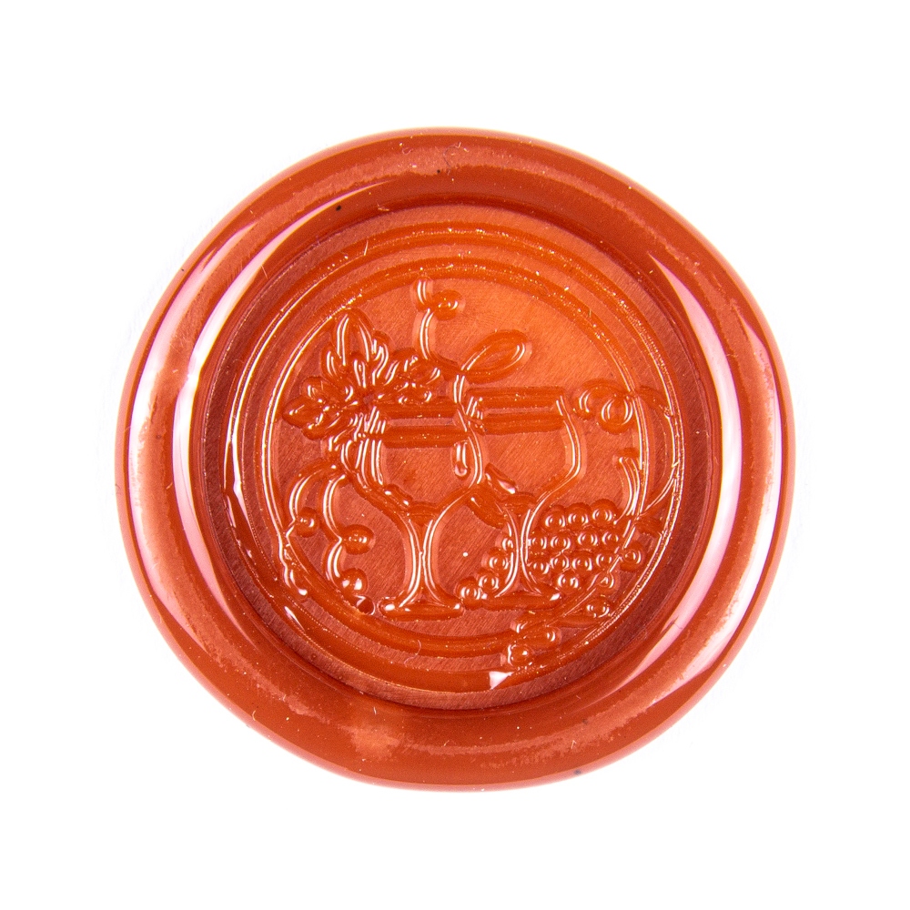 A 25mm decorative wax stamp with toast glasses to produce an original wax seal for letters, diplomas, cards, gifts, wedding announcements or invitations.