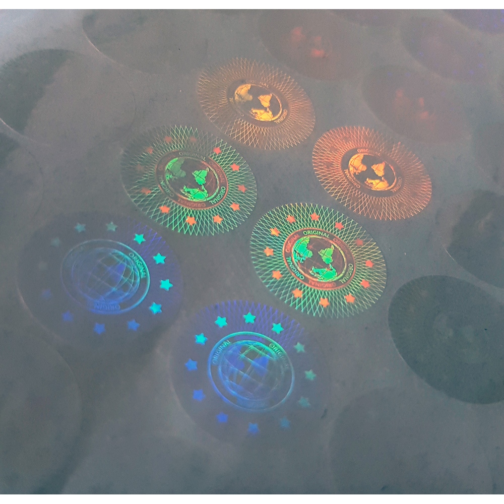 Original transparent two-layer round hologram with the main motive of a globe in two layers. The first layer bears the continents while the second layer shows the globe lines (parallels and meridians) creating together an amazing effect. The globe is surrounded by a ring with the “original” inscription going round (3 + 3). The sticker’s periphery is completed with a guilloché motive of stars describing a circle. The sticker is extremely universal, professionally processed, it can be used to secure any document or card – plastic, paper, ID card, customer card, employee card, entry ticket etc. It can also be used as a small seal.
