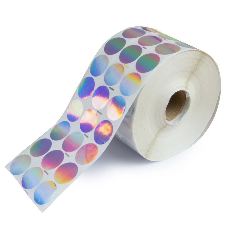 One-layer silver VOID security round label (30 mm) with holographic effect and optional printing. The label is predominantly used to secure goods, boxes, documents, letters and valuables when moving, transporting and selling goods in e-shops and mortar-and-brick shops. The label can also be placed to cover, fully or partially, stapled joints of contracts, stamps or other important contract elements that must not be removed or counterfeited. The label’s base colour is silver creating multi-coloured hologram effect at different angles of view and light.