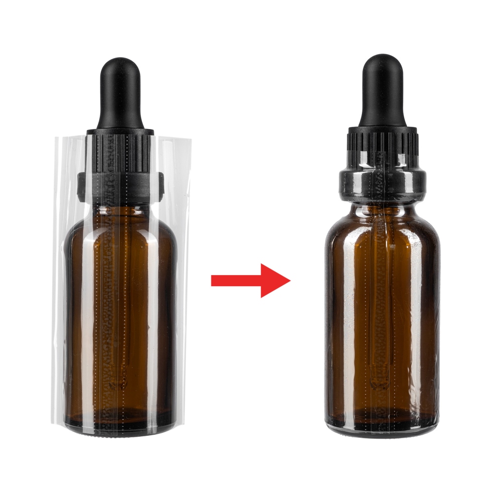 Transparent PVC film serves as a protective element (seal) that secures the cap of the product against opening during handling or transport. A product with intact film indicates to the customer an originally packaged product that has never been opened and used. The foil can be used on glass vials, dropper bottles, tubes, bottle necks, etc. The foil always adjusts itself to the shape of the packaging.