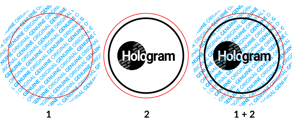 This layer usually bears the underlying graphic design; the hologram’s background may, for example, show the repetitive visualisation of “Original”, “Genuine”, “Authentic” or similar text.