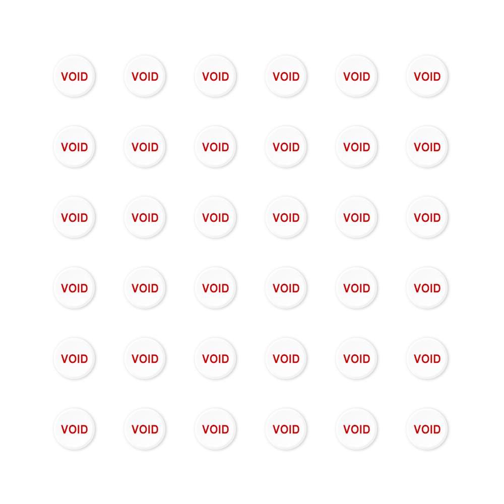 Circular label with a white background and a red VOID title is aimed mostly to protect screws from unauthorized deinstallation for service, cautionary and advertisement usage. The same cautionary seal is also used by prestigious mobile phones producers. Highly adhesive acrylic glue keeps the cautionary seal reliably sticked on the tops of set-in screws. The seal gets ragged when trying to unstick.